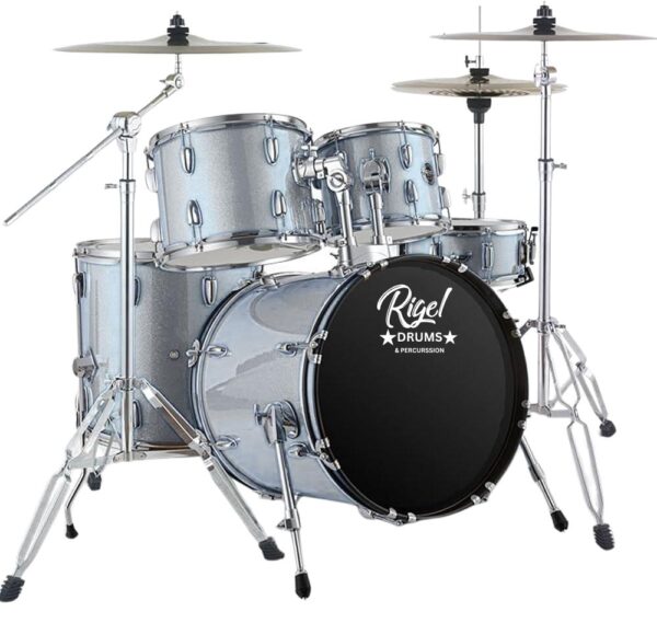 The Rigel drum sets give you a solid foundation right from the start! Featuring 5-ply select hardwood shells. 45-degree bearing edges. Plus, Hardware and Cymbals.